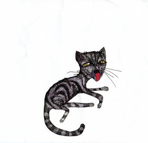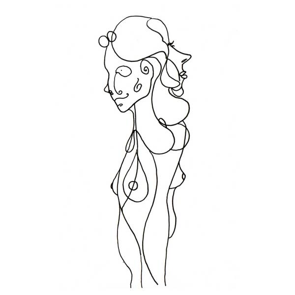 Pressetext: Sandra Danicke <<Arnika Müll arbeitet auf ihre ganz eigene Weise mit dem Medium der Zeichnung. Bei ihr geht es um Gegensätzliches, aber es entsteht nicht aus der Kombination einander fremder Dinge, sondern aus der Verzerrung der Figuren bis zur Groteske. <br>Die langen Wimpern eines hübschen Mädchens haben die gleiche Anmutung wie ihr stacheliges Kopfhaar, das starr vom Kopf absteht. Die körperliche Verfassung der gezeichneten Figuren setzt sich in ihren Stoffpuppen fort. Sie baumeln von der Decke und dabei steht ihre überdrehte Haltung zur beherrschten Mimik im Widerspruch. Die 1978 in Gießen geborene Arnika Müll studierte an der Hochschule für Gestaltung in Offenbach. Ihr Dozent, Heiner Blum, hat die Künstlerin für diese Ausstellung vorgeschlagen.>>